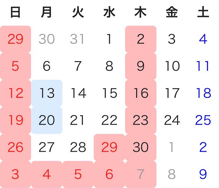 日木祝以外に不定期で休診いただいております。トップページ下または診療日時ページからカレンダーをご確認ください。